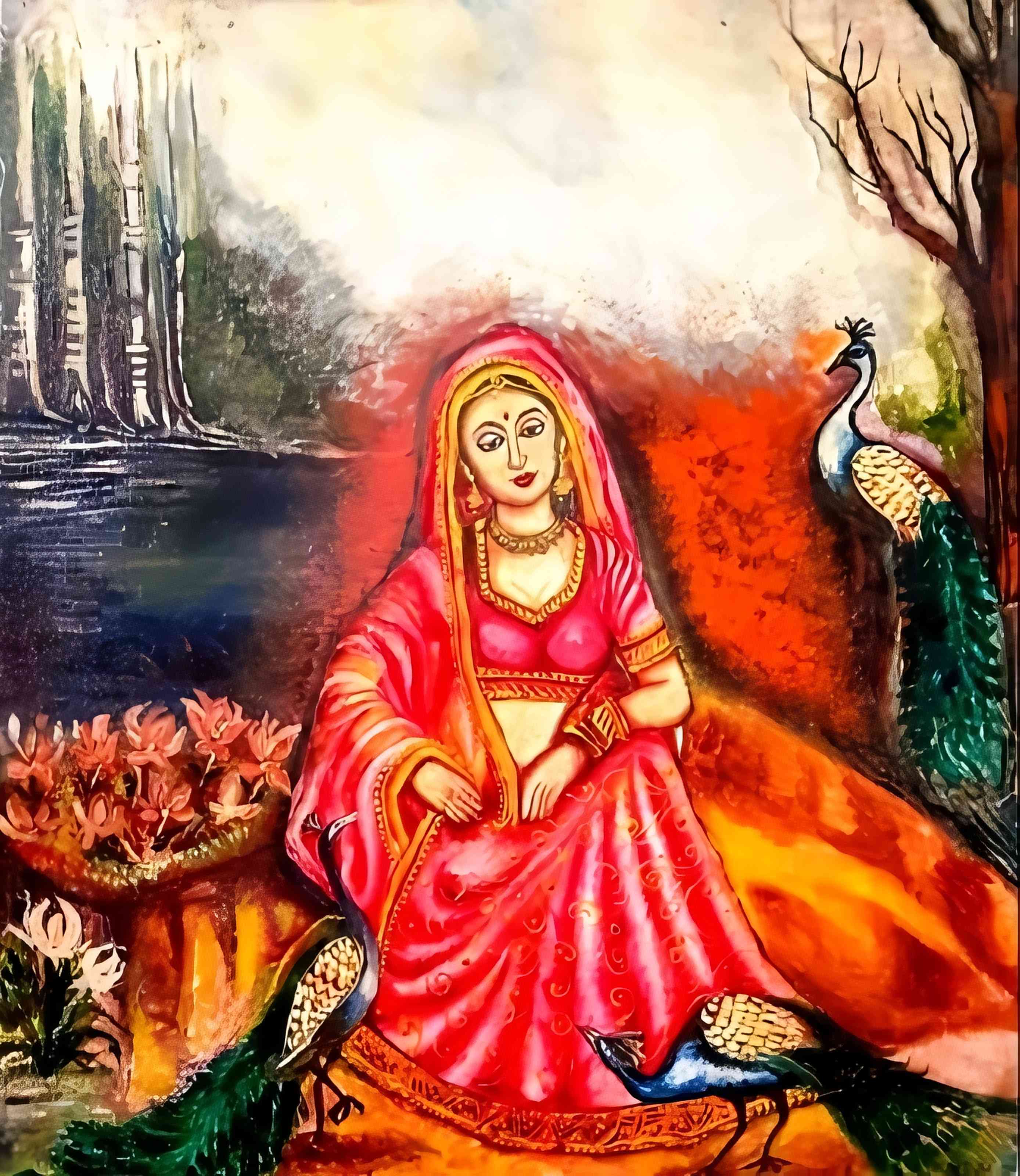 Serenity with Peacocks and Lotus
