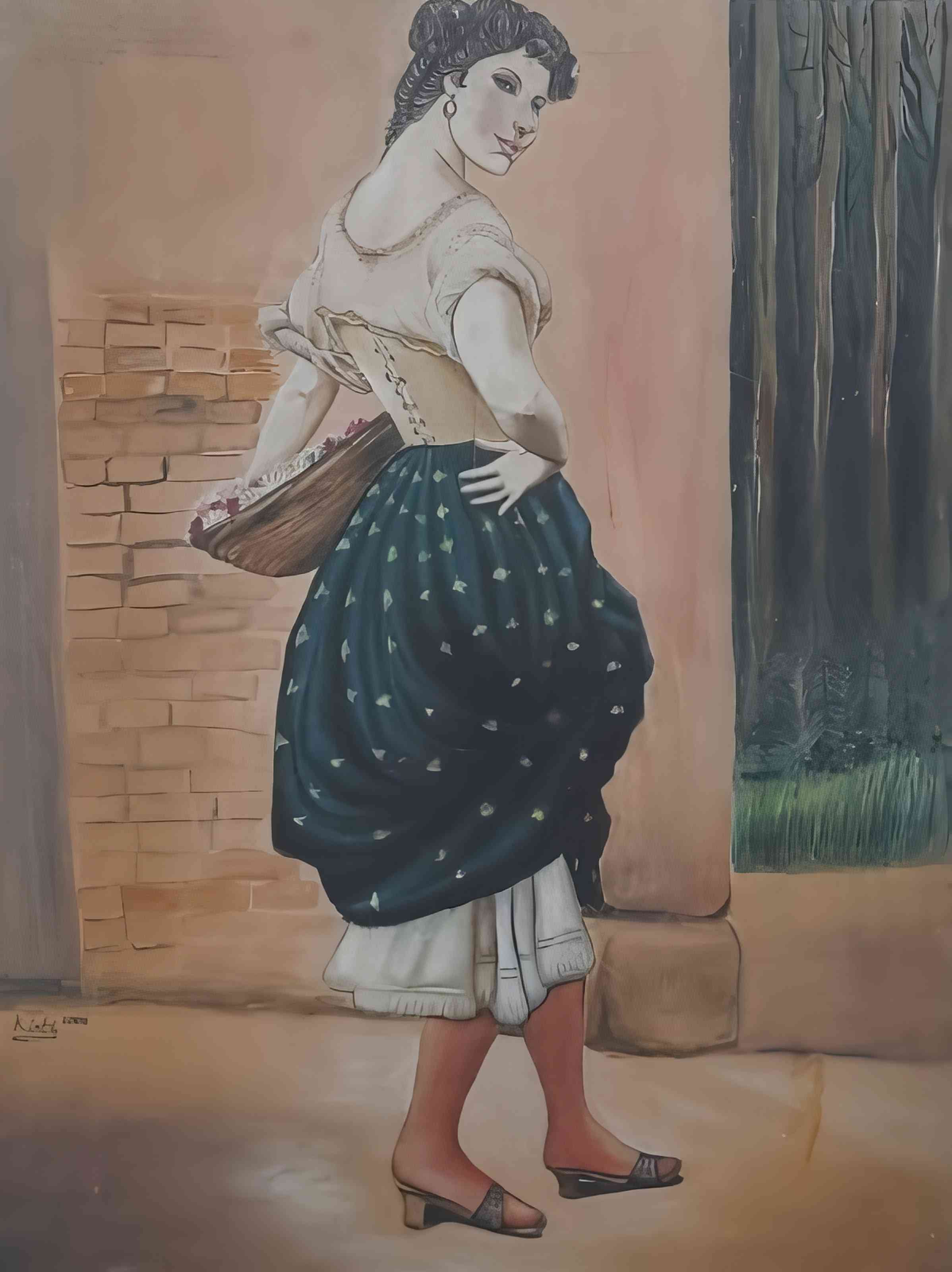 Flower Basket Lady in Historical Attire