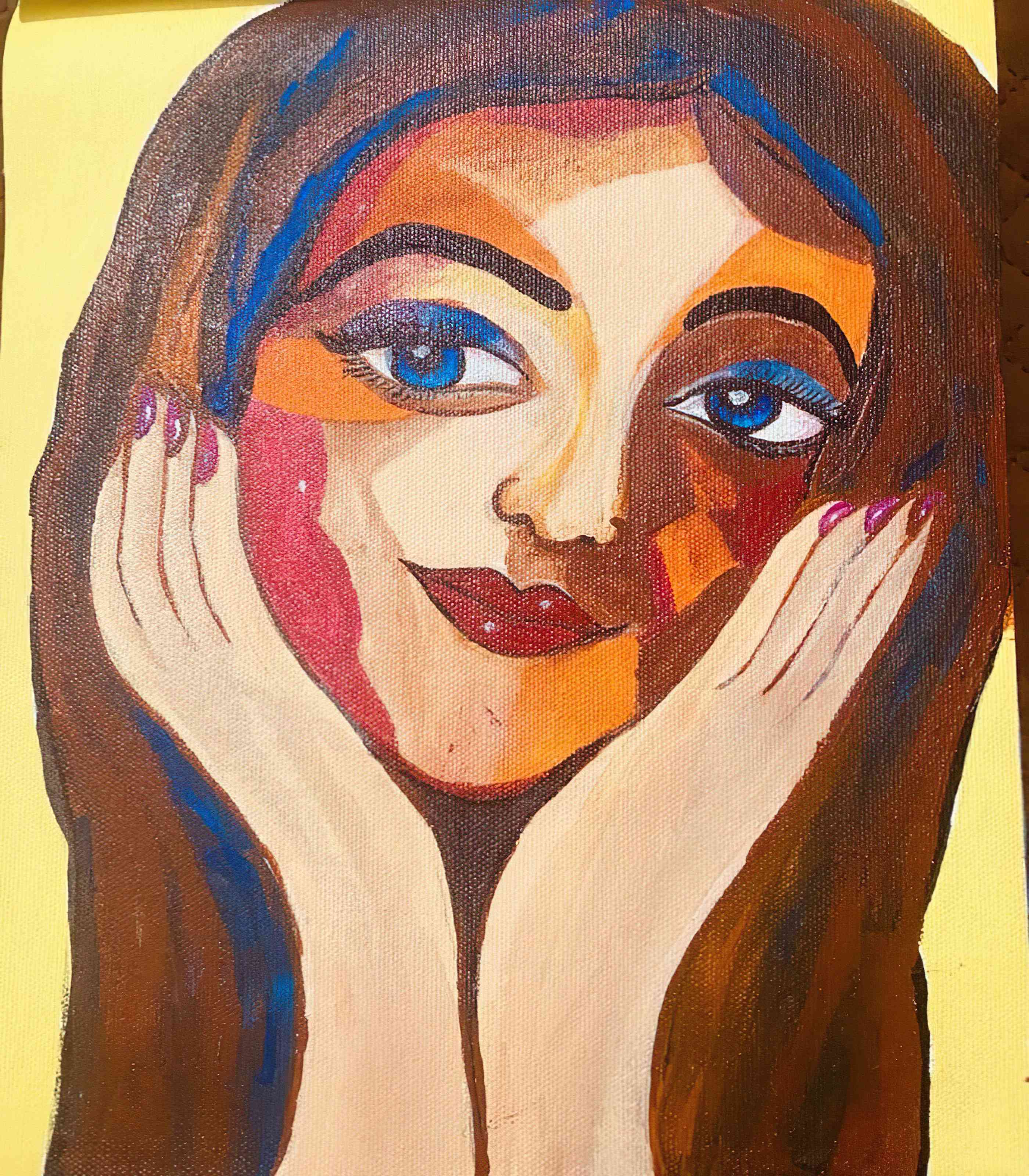 Tree of Companions – Birds in Balance is a vibrant and symmetrical folk-art painting that captures the joyful presence of birds in nature. A stylized tree with a blue trunk and branches adorned with red and yellow leaves serves as the central axis, hosting seven birds in total.