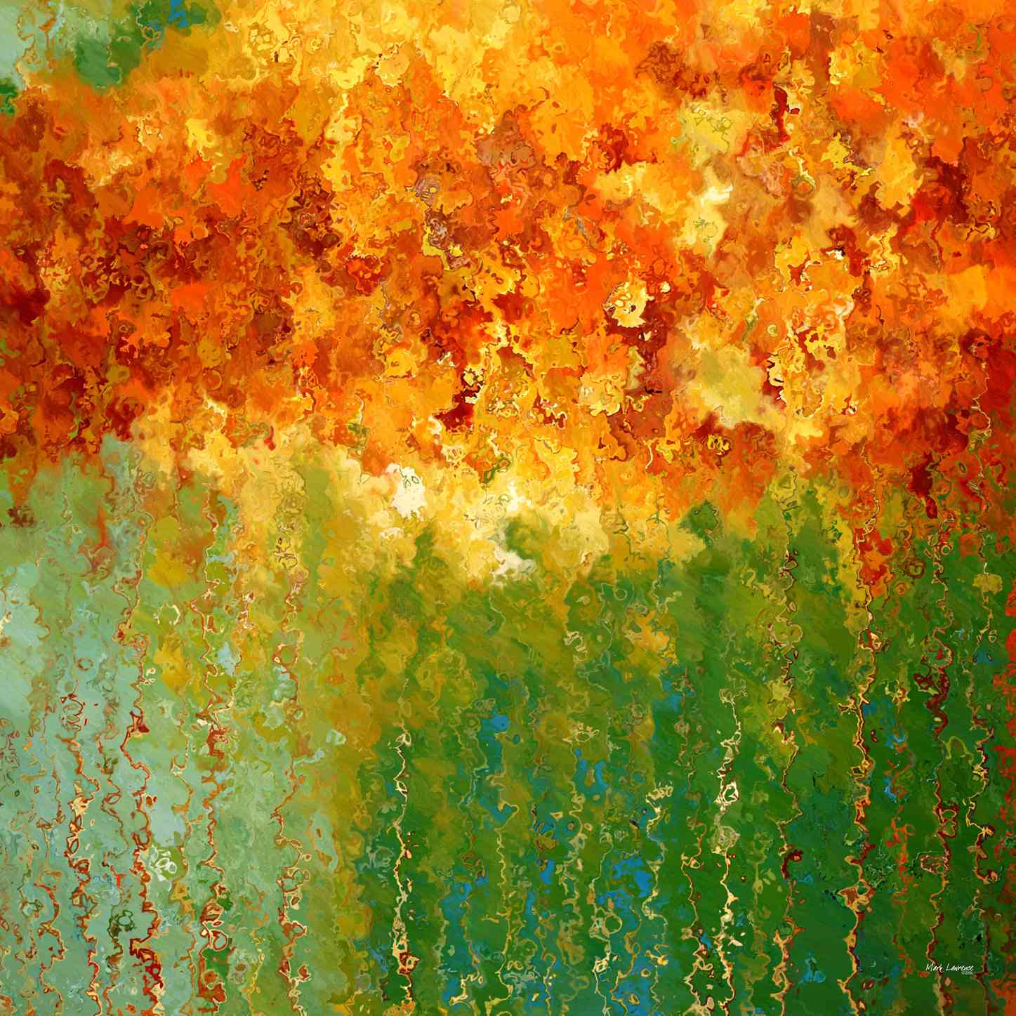 Magma’s Resurgence is a visceral exploration of color and geological energy. The artist utilizes thick, sculptural layers of paint applied with a palette knife to create a rugged, three-dimensional surface.