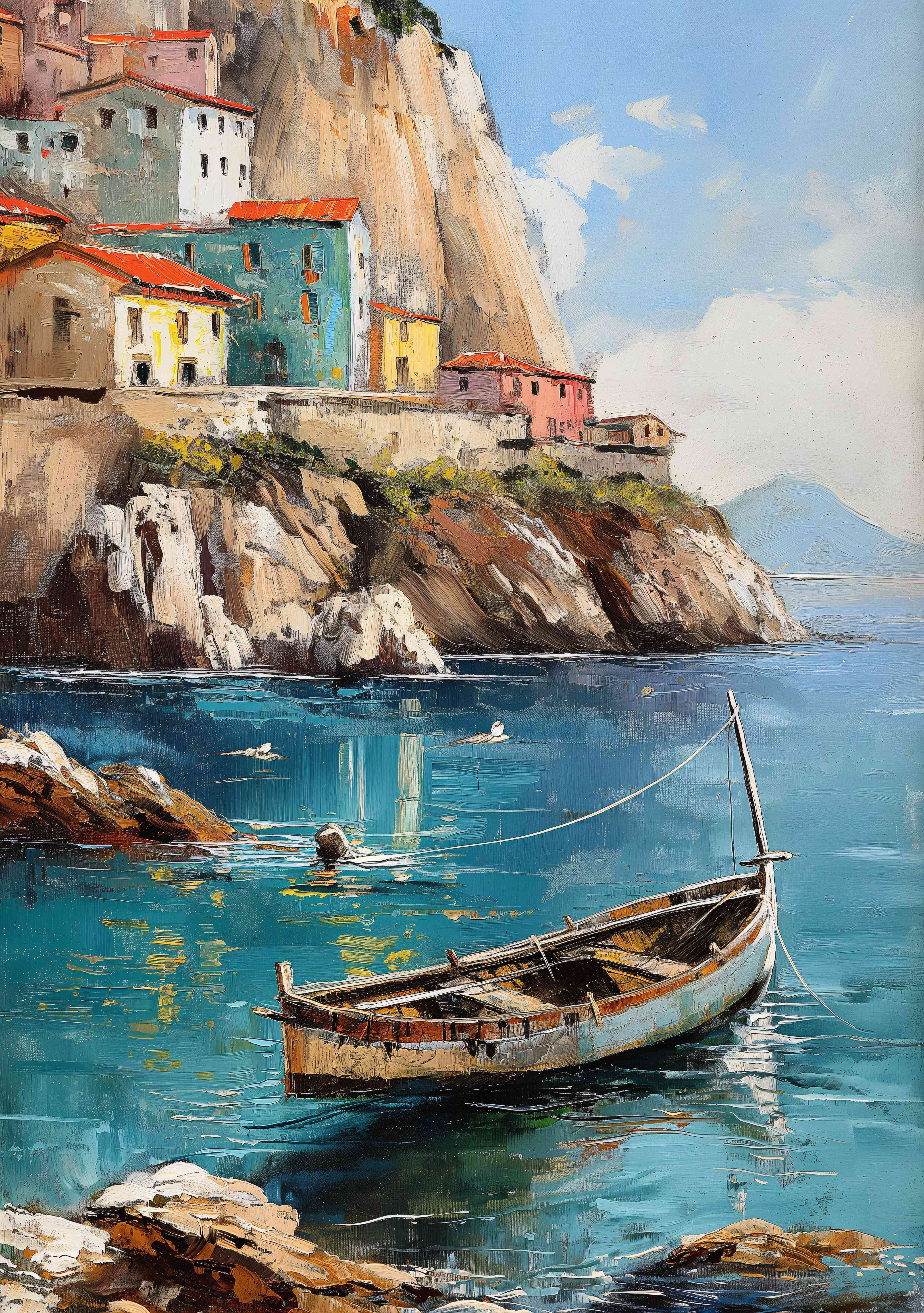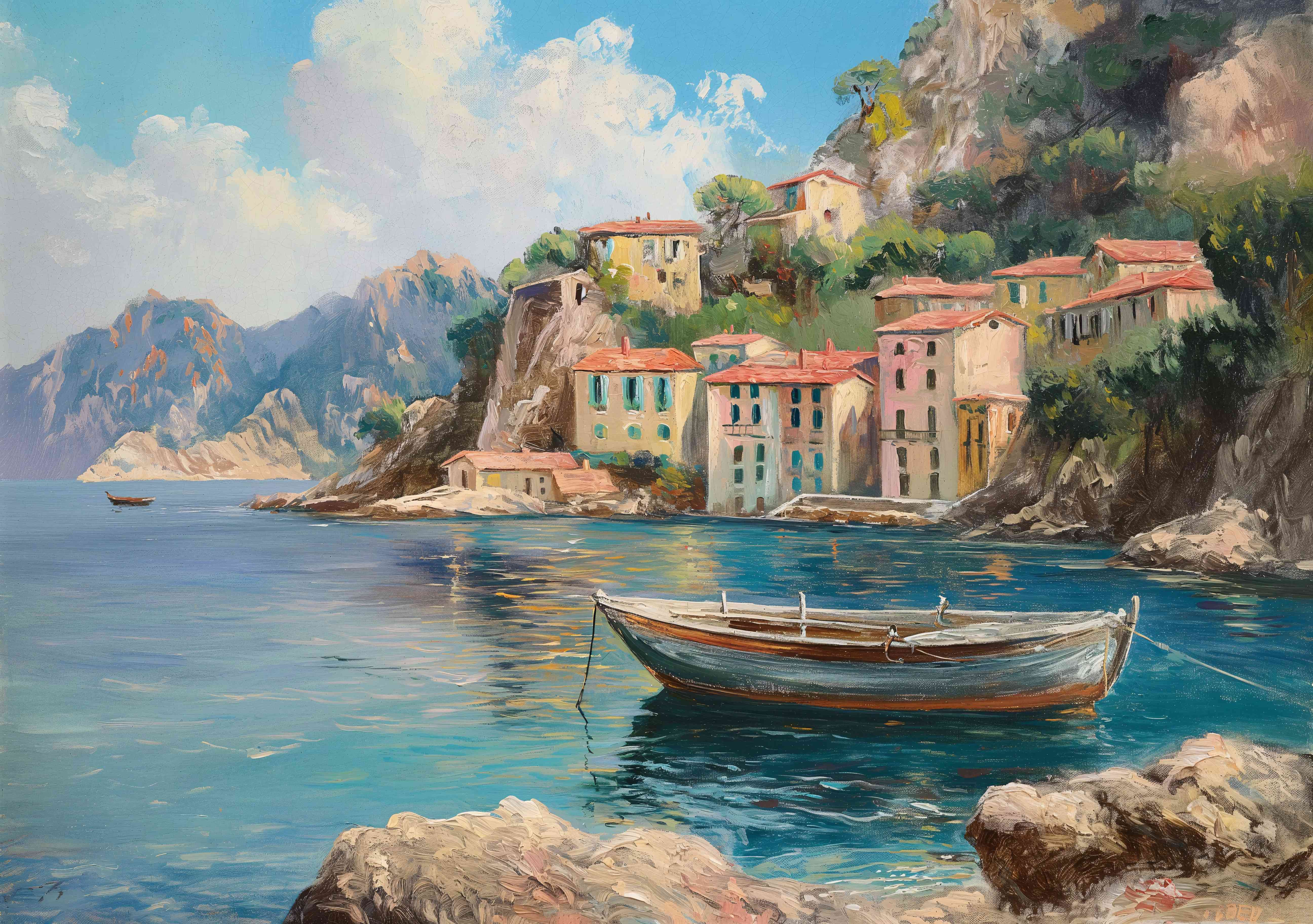 Coastal Village with Boats and Fishermen